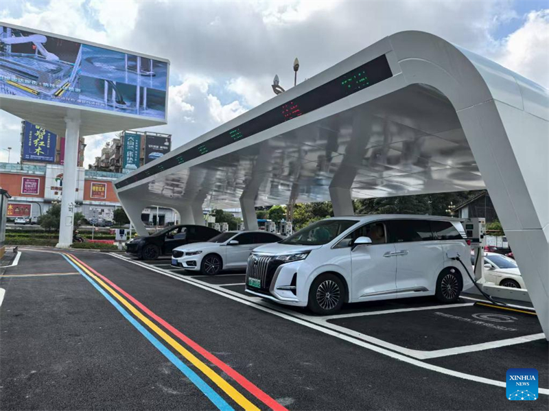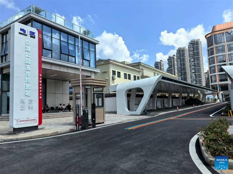 Dieses Foto vom 13. Juni 2025 zeigt die Ladestation im Quanhu-Park mit ultraschnellen flüssigkeitsgekühlten Ladeger?ten in Guiyang in der südwestchinesischen Provinz Guizhou. (Xinhua)