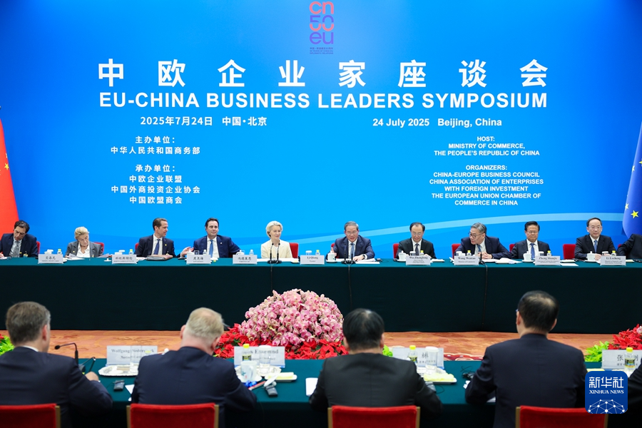 Der chinesische Ministerpr?sident Li Qiang hat gemeinsam mit der EU-Kommissionspr?sidentin Ursula von der Leyen an einem Symposium chinesischer und europ?ischer Unternehmer am Donnerstag in der Gro?en Halle des Volkes in Beijing teilgenommen.