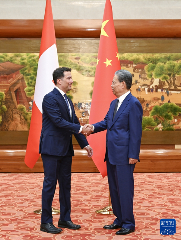 Der Vorsitzende des St?ndigen Ausschusses des chinesischen Nationalen Volkskongresses (NVK), Zhao Leji, hat sich am Dienstag zu einem Gespr?ch mit dem Vorsitzenden des Schweizer St?nderats, Andrea Caroni, in der Gro?en Halle des Volkes in Beijing getroffen.